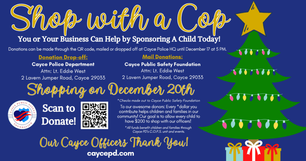 Welcome, and thank you for visiting the Cayce Police Department’s page.